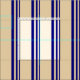 Este design apresenta um padrão listrado com cores como azul e bege.