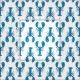 Tecido Padrões costeiros de lavagantes em azul e branco