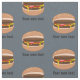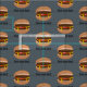 Um padrão divertido de hambúrgueres constituído de um gráfico repetido ousado sobre um fundo de cinza escura. O seu texto aparecerá automaticamente sob cada motivo de hambúrguer ou você só poderá ter a imagem se preferir. A cor do tecido é fácil de ser alterada através da opção EDIT se você quiser escolher um tom diferente da paleta ou adicionar seu próprio hex ou outro código.