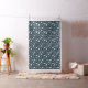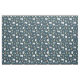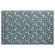 Tecido com um padrão festivo caprichoso. Ursos polares, renas, árvores, raposas e flocos de neve. Num fundo verde escuro.