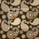 Tecido em ornamentado, herança, padrão paisley em tons de bronzeado, bege e e caramelo, acentuados com creme, sobre fundo marrom-chocolate