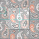 Tecido Paisley Pattern Cinza e Coral