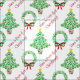 Este tecido branco apresenta um design divertido com árvores de Natal e coroas feitas com estampas vermelhas e verdes. A legenda diz: Tenha um Natal Purr-reto! Concebidos especialmente para amantes de gatos.