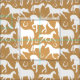 Tecido impresso com um padrão de cavalos adoráveis, em cores de cavalo Palomino.