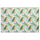 Papagaio colorido bonito e flores amarelas exóticas sobre fundo branco. Modelo de tecido personalizável
