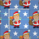 Presidente Americano animado Donald Trump Papai Noel. Padrão de inverno azul de Natal com estrelas.