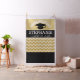 Uma design divertida para celebrar o formando. Adicione um nome e ano para fazer um favor ou lembrança de festa de formatura pessoal. Design clássico com um boné de formatura e fundo de cor sólida com padrão de diafragma.