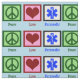 Um sinal de paz verde, um coração vermelho, e um símbolo médico azul para um EMT. Eu amo presentes do paramédico. Eu sei que eu estou nas mãos do bom quando eu ver a ambulância levantar.