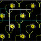 Novo padrão com remo de bola de picles de verde limão e bola de picles amarela nele. A rodar a bola de piclebol. Fundo preto.