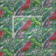 Um design telhado que caracteriza uma fotografia de um pássaro cardinal masculino vermelho brilhante.