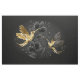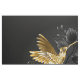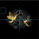 Joias pretas e douradas, beija-flores, sobre fundo de cinza decorado com plantas. Pássaros joalharia. Pássaro ouro. Pássaro Dourado.