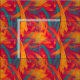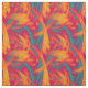 O desenho abstrato original "Pássaro do Paraíso Tropical" apresenta cores amarelo, laranja e azul neste tecido do jardim.