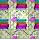 Adorável tecido de professor de ave branca aposentado. A design também inclui uma pilha colorida de livros com títulos de aposentadoria em bolinhas verdes limões e natas de fundo.