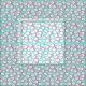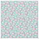 Este tecido tem um padrão de ovais dispersos em turquesa e roxo com ovais brancos e círculos com linhas dentro.
