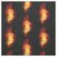 Pena de pavão brilhante feita de fogo e chamas sobre fundo negro.