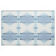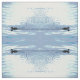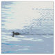 Este design de tecido de animais muito simplesmente desenhado apresenta um padrão geométrico repetitivo de abstrato de um pato que se move através da água, deixando um acordar de ondulações para trás. As cores mínimas são azul claro, cinza, branco, turquesa, verde e preto. Um pássaro aquático muito gracioso!