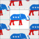 Este padrão vermelho, branco e azul apresenta uma versão ilustrada do elefante republicano. Mostre seu lado patriótico com este padrão.