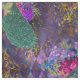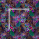 Este design arrojado apresenta um lindo pavão azul e verde com flores roxas e cor-de-rosa num fundo roxo com embelezamentos de ouro.