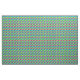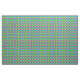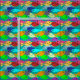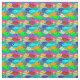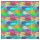 Este tecido tem uma design de uma escola de peixes nadando no oceano em verde, azul, laranja, amarelo, vermelho, rosa e azul-verde.