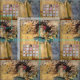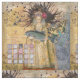 Mergulhe numa mistura única de elegância vintage e fantasia surreal com este design impressionante. Uma mulher clássica, que lembra o retrato histórico, é representada segurando um peixe grande, criando um ponto focal inesperado e intrigante. Ela veste uma coroa de penas, um véu delicado, e um vestido com um padrão rico, sugerindo uma presença real ou nobre. Seus óculos modernos adicionam um toque caprichoso e anacrônico. O fundo é uma tapeçaria de tons de ouro mudados, padrões sutis e pistas da natureza, incluindo pássaros voadores e uma grande asa de borboleta. Uma grade de amostras de cores mudas do lado esquerdo adiciona um talento artístico contemporâneo a essa obra cativante e imaginativa.