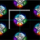 Pentagrama luminoso desenhado artificialmente com cinco elementos mágicos, água, terra, fogo, astral, ar sobre fundo negro. Pentagrama Wiccan. Wicca