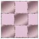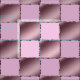 Este belo tecido perfeito para um berçário de bebês ou uma menina apresenta quadrados rosa e roxos pastéis que formam um padrão de colcha sobre este tecido. Os quadrados são esboçados com uma fita-seda rosa e roxa.