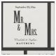 Personalize para escolher sua cor de fundo (qualquer outra cor que não a preta) para este design de casamento personalizado entre o Sr. e a Sra. modelo. Simplesmente troque informações em cada campo para a data do seu casamento, nomes e sobrenomes e você pode criar manobras únicas de casamento que você vai apreciar durante toda a vida. Você pode até adicionar suas fotos como fundo a este design. Design de modelo original por Designs Holiday Hearts.