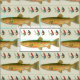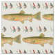 Tecido padrão de truta e mosca de pesca. Crie decoração para casa, itens de costura ou artesanato com este tecido personalizado com tema de pesca de água doce. Imagens coloridas de trutas manchadas fazem "listras" ao lado de moscas de pesca vermelhas e azuis. O fundo é um off-white neutro e faz parte do design, portanto não pode ser alterado.