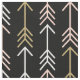 Tecido Pêssego Preto e Setas Douradas