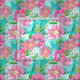 Um padrão de pré-disquete sem descontinuidades com flores cor-de-rosa em um fundo verde minúsculo com pequenos pontos laranja. O design tem um aspecto pintado à mão, combinando elementos florais encantadores com pontos lúdicos para criar um efeito fresco e na moda.