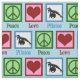 Pilatos de Paz e Amor. Um presente de instrutor de pilates bonitinho com um sinal de paz, coração e mulher esticando-se sobre uma bola de exercícios.