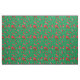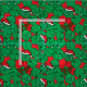 Divertido tecido de Natal de giro salsicha verde kawaii sobre um fundo vermelho