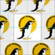 Uma ilustração branca e preta de um pinguim Chinstrap caminhando em frente ao sol amarelo. Um design para amantes de pinguins. Estas aves são encontradas no pacífico e nos oceanos antárticos.