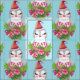 Tecido com um design bonito e caprichoso com um adorável pinguim vestindo um chapéu vermelho de santa. Ficando atrás de um buquê de flores com canas doces listradas cor-de-rosa e branca.