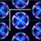 Imagens fractais roxas e azuis brilhantes que sugerem a Estrela do Norte (Polaris) e as Luzes do Norte. A imagem é sobreposta a um fundo estrelado.