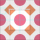 Tecido Pontos cor-de-rosa e quadrados laranja