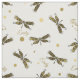 Nome personalizado e bela libélula de ouro impressa tecido pelo pátio. Este tecido bonito apresenta ilustrações de libélula ornamental adornadas com asas de folha de ouro simuladas e pontos de ouro falsos bonito. Um nome personalizado é impresso em um script cursivo bonito e espalhado ao redor do padrão.