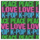 Peace Love K-Pop. Um tecido legal, cor-de-rosa-neon, verde e azul Kpop para um fã de música pop coreana quente. Divertido e fofo.