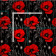 Lindos papoilos vermelhos brilhantes num campo de preto