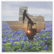Bombeie o óleo de bombeamento do jaque no por do sol feito na forma de Texas em um fundo dos bluebonnets e do céu azul impressos no tecido.