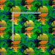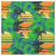 Teste padrão havaiano de uma silhueta do surfista na frente de um por do sol tropical.