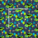 Leve presentes personalizados e decoração para quarta festas de aniversário com este tecido padronizado. Ele apresenta ilustrações dos carros de corrida em verde limão e azul brilhante com o número 4 e o slogan NEED 4 SPEED. Junto com os carros estão coordenando balões verdes limões e azuis brilhantes, troféus, capacetes de corrida e bandeiras com controle. As ilustrações são colocadas sobre um fundo azul marinho.