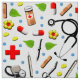 Tecido de padrões de design com temas médicos com prestações de cuidados de saúde para médicos, enfermeiros ou assistente médico.