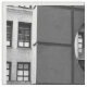 A luz solar ilumina a construção do fundo, as placas quadradas de suas janelas retangulares uma mistura de reflexões claras e escuras. A parede sombreada do primeiro plano tira seu olho completamente aos detalhes.