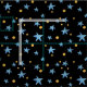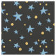 Tecido Preto com estrelas azuis e pontos amarelos