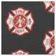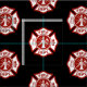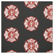 O símbolo da cruz maltesa do salvamento do fogo senta-se em um design modelado em um fundo preto.