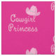 Texto da Princesa Cowgirl com o cowboy rosa que o Fundo pode ser mudado para qualquer cor. Está disponível uma fita de 1/2 " e 3" ou de grão grosso.