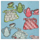 Um padrão rochoso, retro, no estilo cartoon apresenta um conjunto de prósperos aventais, bules de chá e molhos nos típicos anos 1940 - tons de rosa, morango, limão, verde abacate e lavanda nos anos 1950 - tons de pinos brancos, claros e claros. Perfeito para costurar seus próprios pombos, cortinas de cozinha, almofadas de cadeiras, e muito mais!