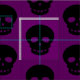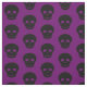 Estes crânios pretos estão em um padrão de bolinhas, num fundo roxo gótico.