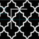 Tecido projetado personalizado com um padrão de Quatrefoil marroquino preto e branco em tendência. Clique no botão "Personalizar" abaixo da imagem do produto para alterar a escala do padrão ou adicionar texto e imagem para criar seu tecido personalizado. Escolha entre 7 tipos diferentes de tecido para as necessidades do seu projeto.